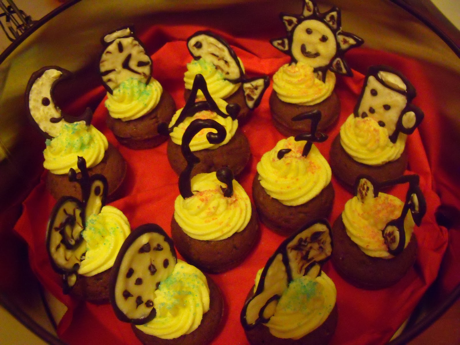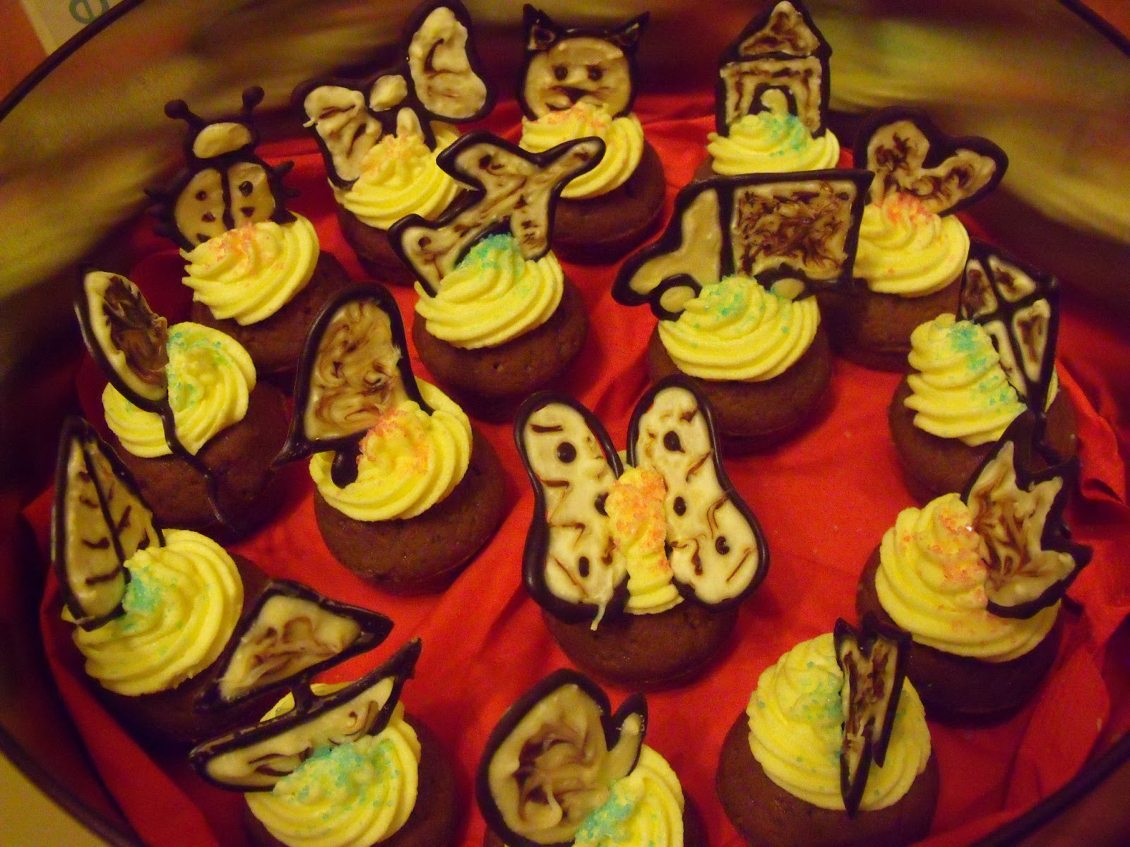 Először a “díszek” rajzolódtak meg ét- és fehércsokiból. A muffin receptje a már megszokott, TücsökBogártól való.