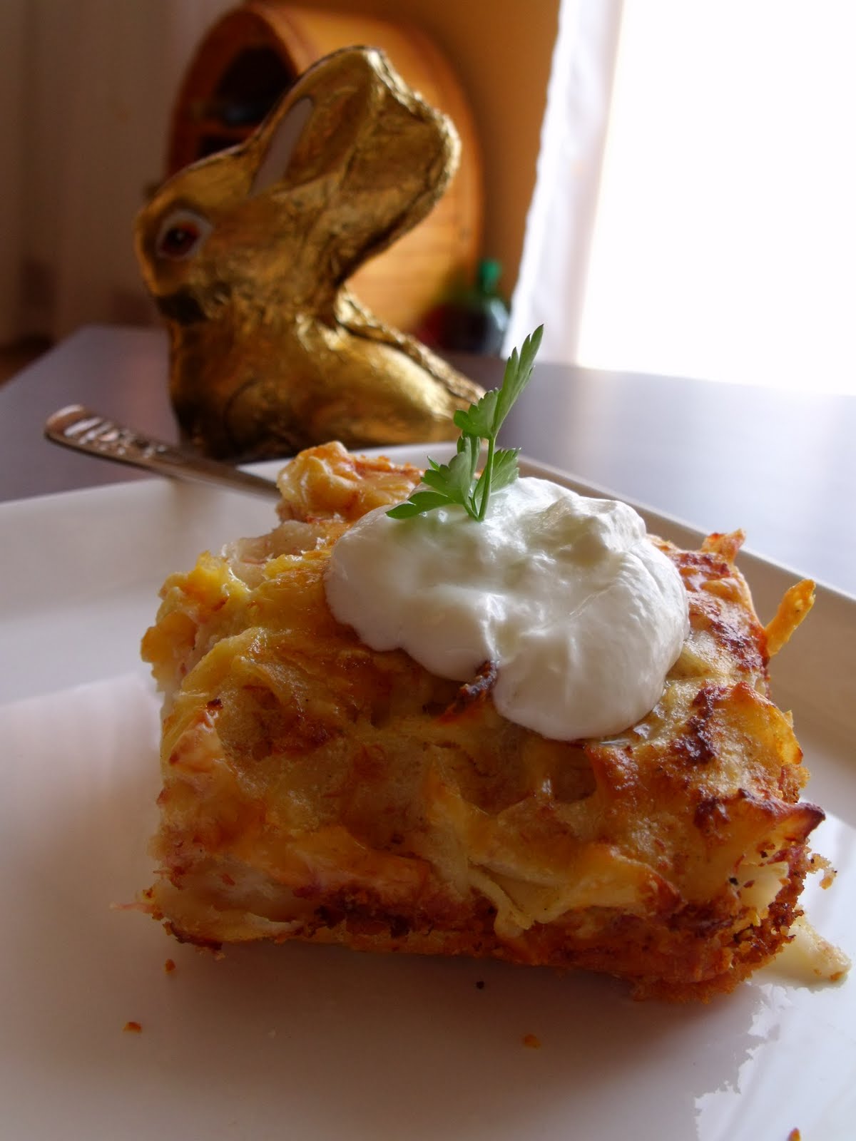 Hozzávalók: 45 dkg sonka, 35 dkg tészta, 4 db tojás, bors, só, 1 nagy doboz tejföl (375 gr), 10 dkg margarin, zsemlemorzsa